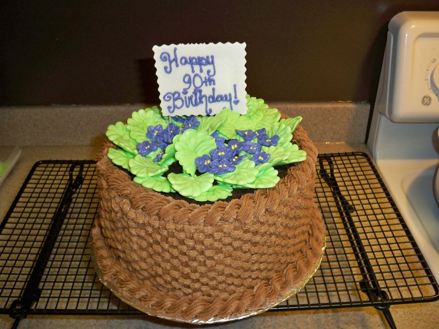 chocolate cake, chocolate buttercream, RI violets and leaves, gumpaste plaque. I had a lot of fun making this for my daughter's teacher's mother who is turning 90!!!