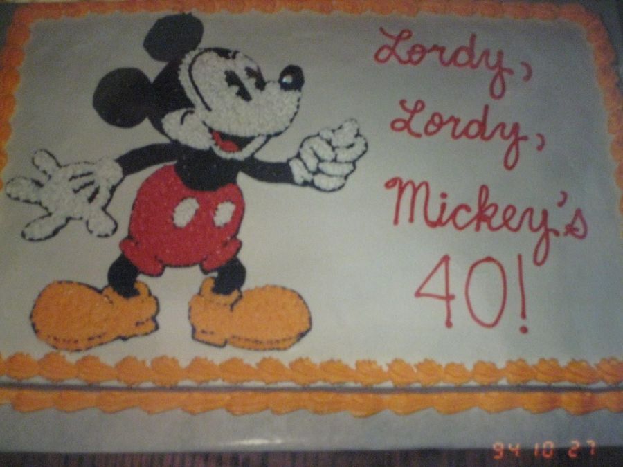 Buttercream frosting. Mickey Mouse cake for a man named Mickey turning 40.