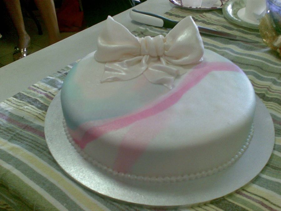 Just for fun, I wanted to try a marble effect (and practise my bow!). MMF with gumpaste bow. Not happy with the photo, hubby had the camera today so I had to get a pic with my phone :(