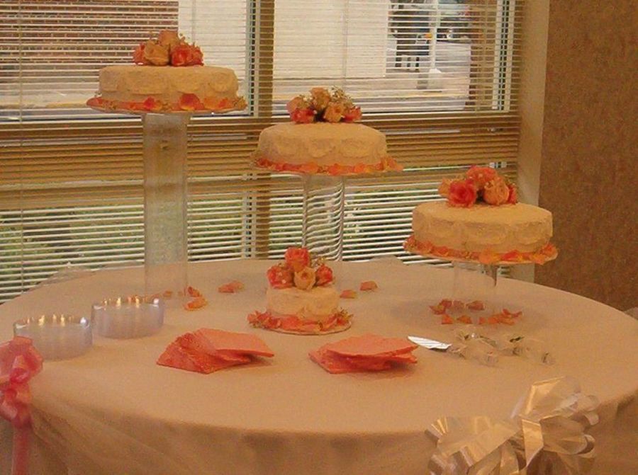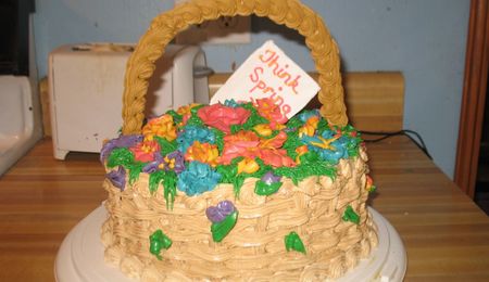 My first wedding cake. It was a wedding gift for my brother and his wonderful wife. She couldn't have chosen an easier design and I had so much making it. It is white cake with strawberry filling, buttercream icing, cornelli lace and pink ribbon around the bottom. Roses on top are real.