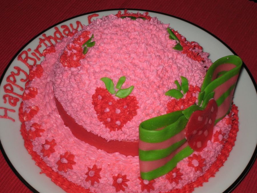 1st decorated cake ever. Yellow cake with strawberry filling and buttercream frosting. Bow and hat band are melted starbursts. TFL!