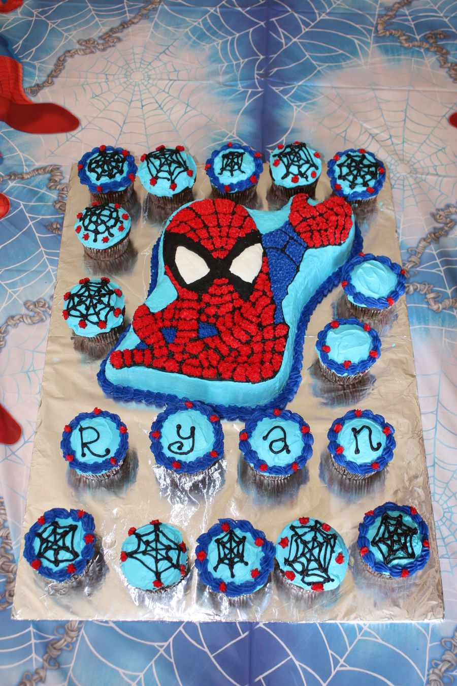 This was a cake for a friend's little boy who turned 4. He requested Spiderman so this is what I came up with. This is one of the first cakes I have done and I was actually more nervous about making red frosting that was actually red and not pink than I was about the actual decorating part. I am pleased with how it turned out and he was super excited.