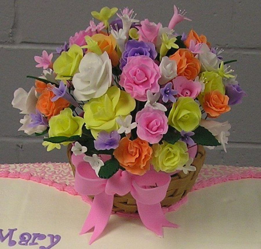 This is the close-up of the flowers that I put on the retirement cake for a friend at work. Fortunatly you can hardly tell in the far away photo that they were dumped into the floor board of my car and lots of the petals are broken off.