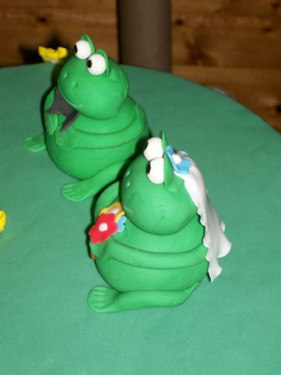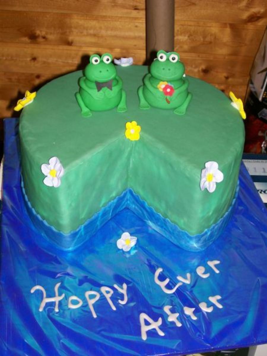 Dummy cake for county fair. Cover and frogs are fondant, flowers are RI. Won Best of Show.