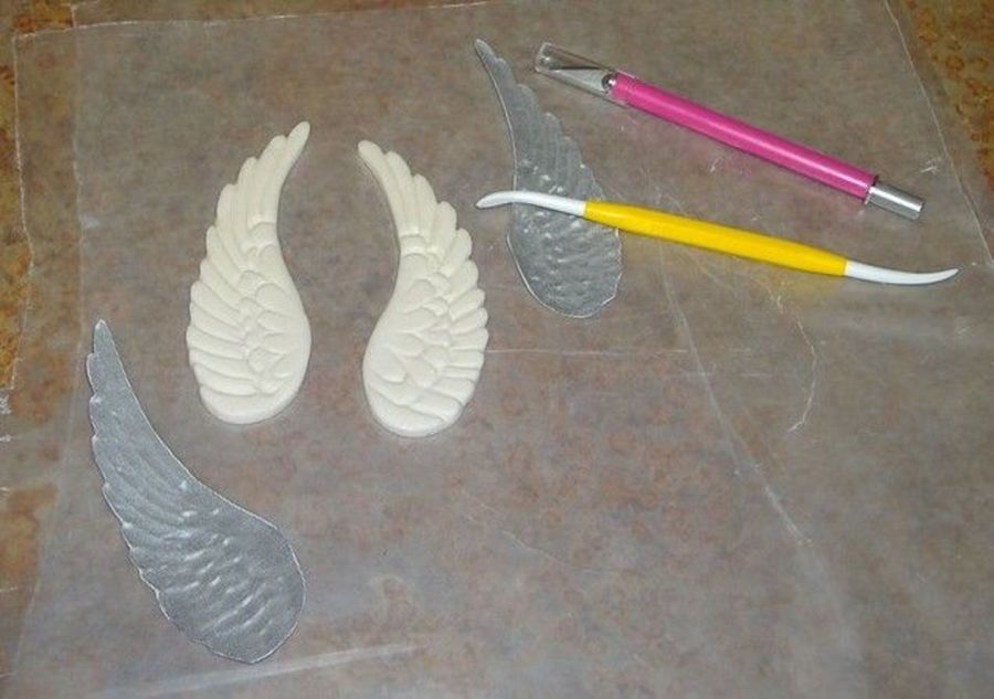 I free handed these because I could not find the mold. What do you think? I used a photo copy of the First Impressions Angel Wings2( black and white photo copy seen in picture)
