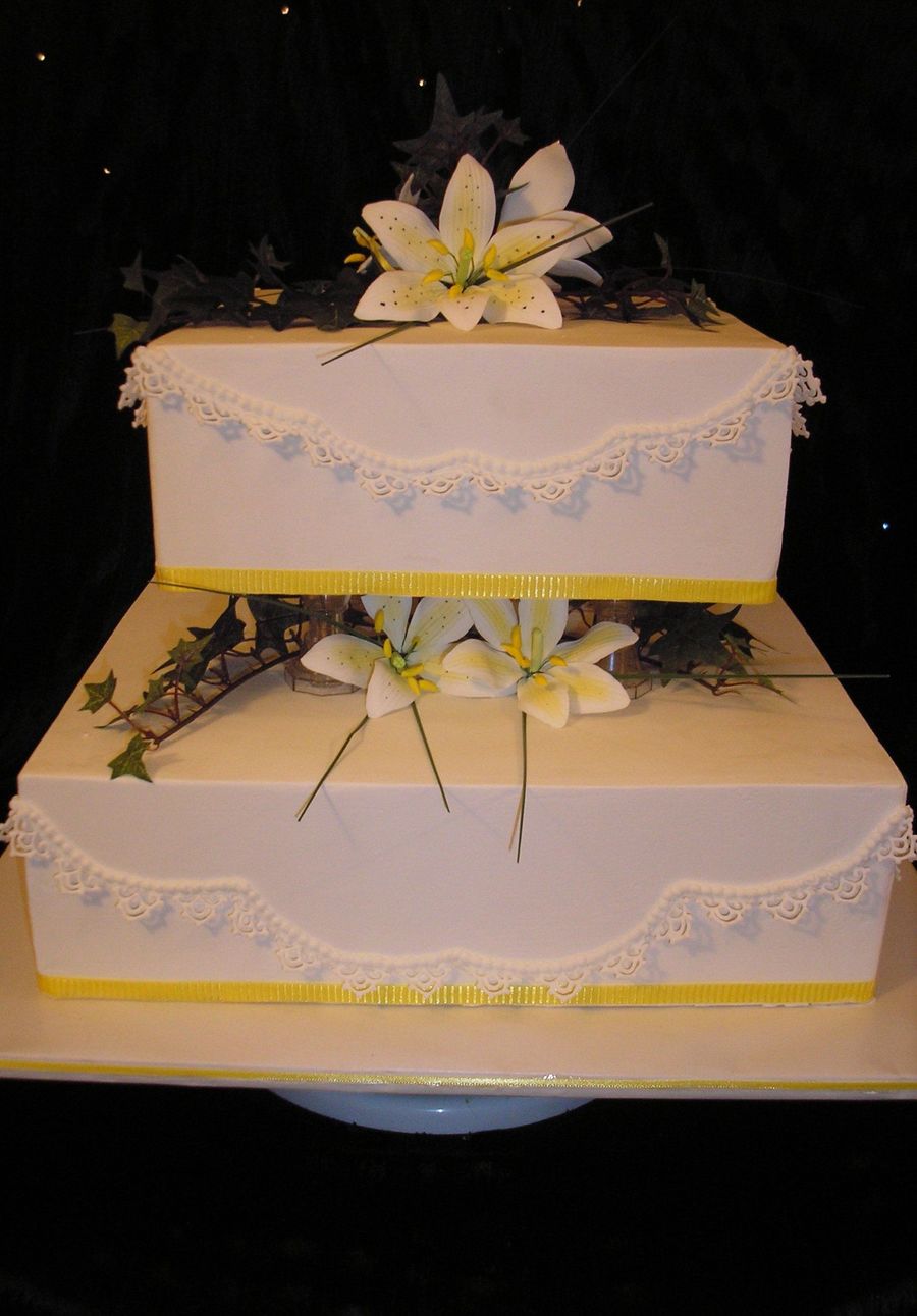 Boy this was hard to make & hard to keep from pieces breaking. Another dummy I made for the show. I love it. Gumpaste lilies & silk ivy on top & between