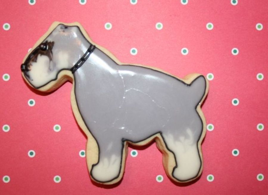 Tried to make a cookie for my brother. Turns out a schnauzer is a lot harder to do than one may think! NFSC with tara1970 icing. Oh, and aparently you can't move the cookie before the icing has set. They kind of like to crack...