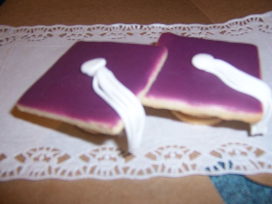 Two small rounds with a square on top. Fondant tassel. Not a very good picture. Made these quickly when I found out the graduation committee was having a meeting:)