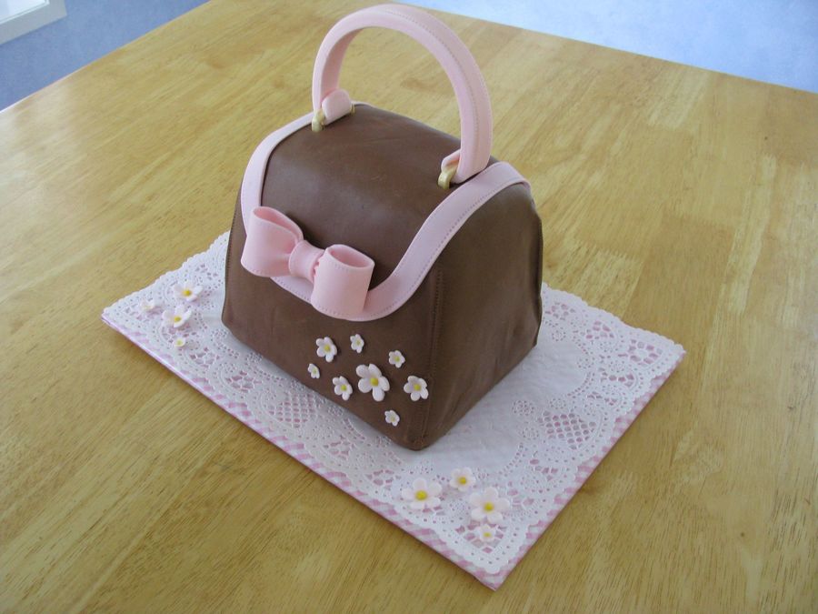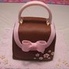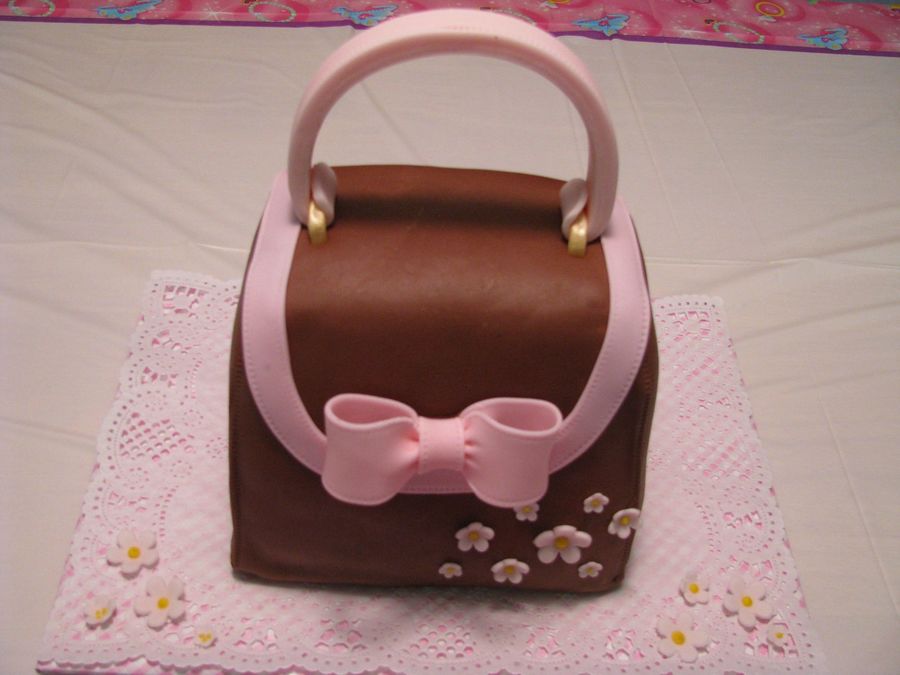 my first attempt at sculpting, had so much trouble with crumbs that i didnt so as much as planned. covered with a mixture of fondant and modeling chocolate. handle and bow are fondant and gumpaste. my daughter was thrilled for her birthday.
