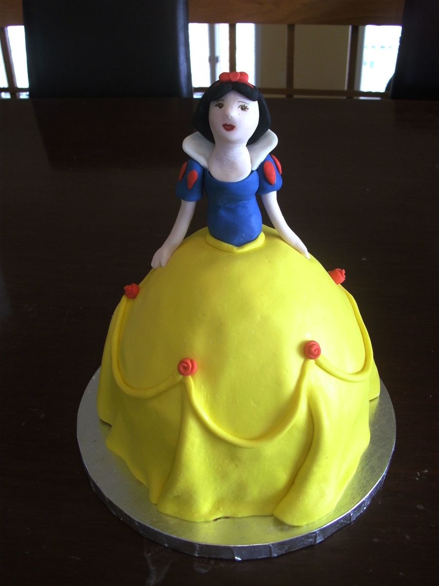 My first doll cake. Upper body made from gum paste. Dress covered in MMF.
