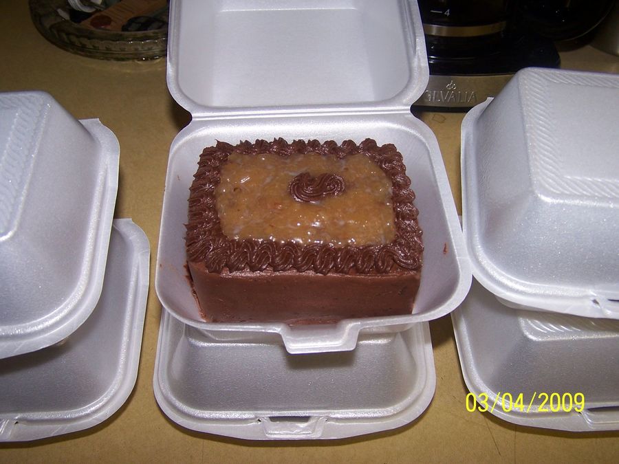 I made these little cakes for a friend who loves german chocolate. They are 4" x 5". Torted, and filled.