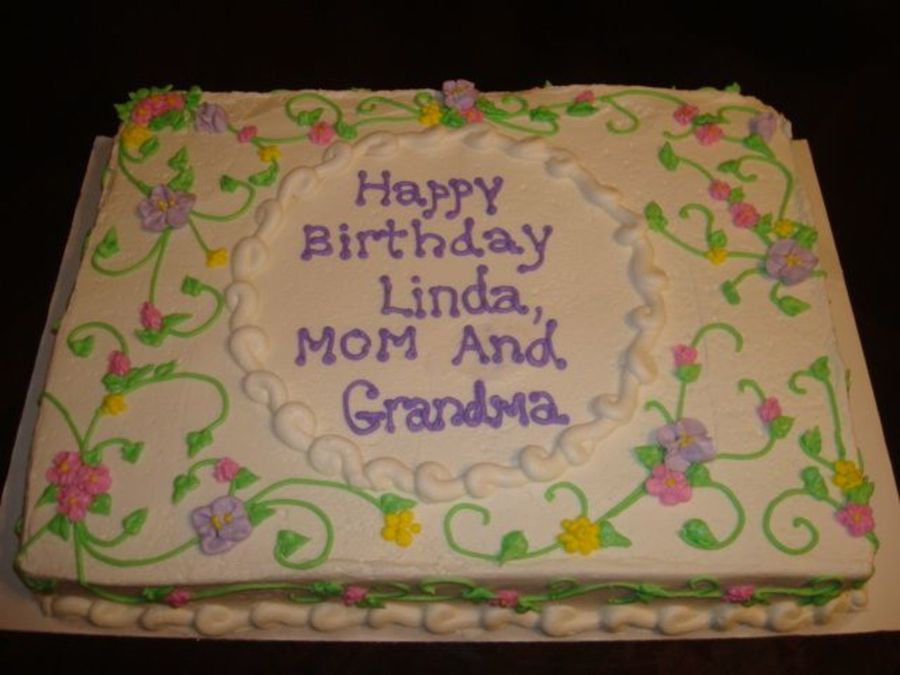 This is a half sheet WASC cake with vanilla buttercream frosting and I just did many vines and swirls with leaves and spring like flowers!