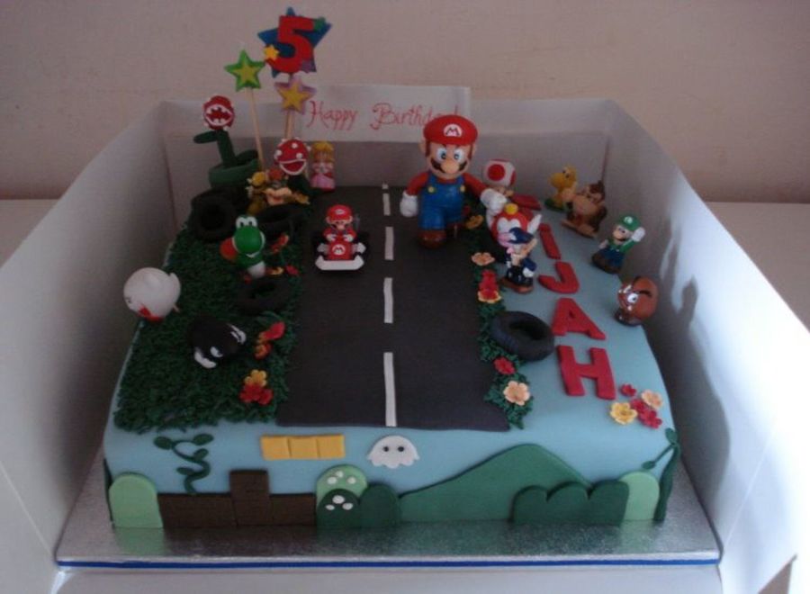 the birthday boy is a mario fanatic. chocolate mud cake with toffee filling covered in fondant. all figures except the plant "obstacle" are plastics bought by the celebrant's mom. whole day of fun doing this! thanks CC.