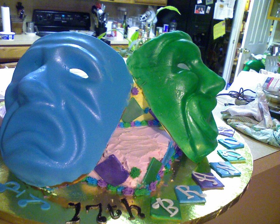 Blue/Green/Purple color Scheme Theater Cake