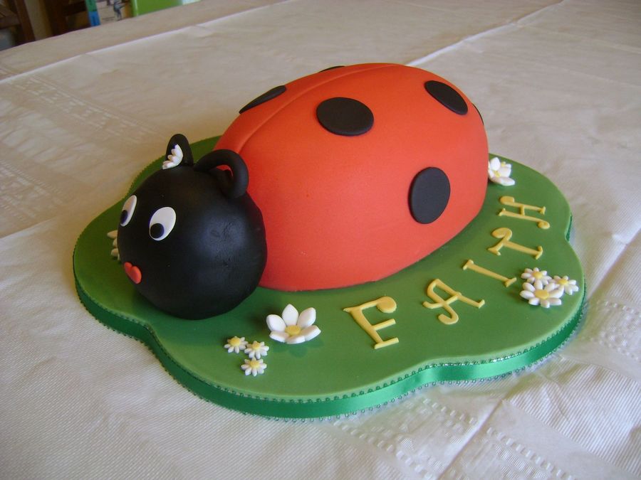 Body baked in oval pans, then carved. The head is RKT covered in fondant. BTW, in the UK they are called Ladybirds rather than bugs.