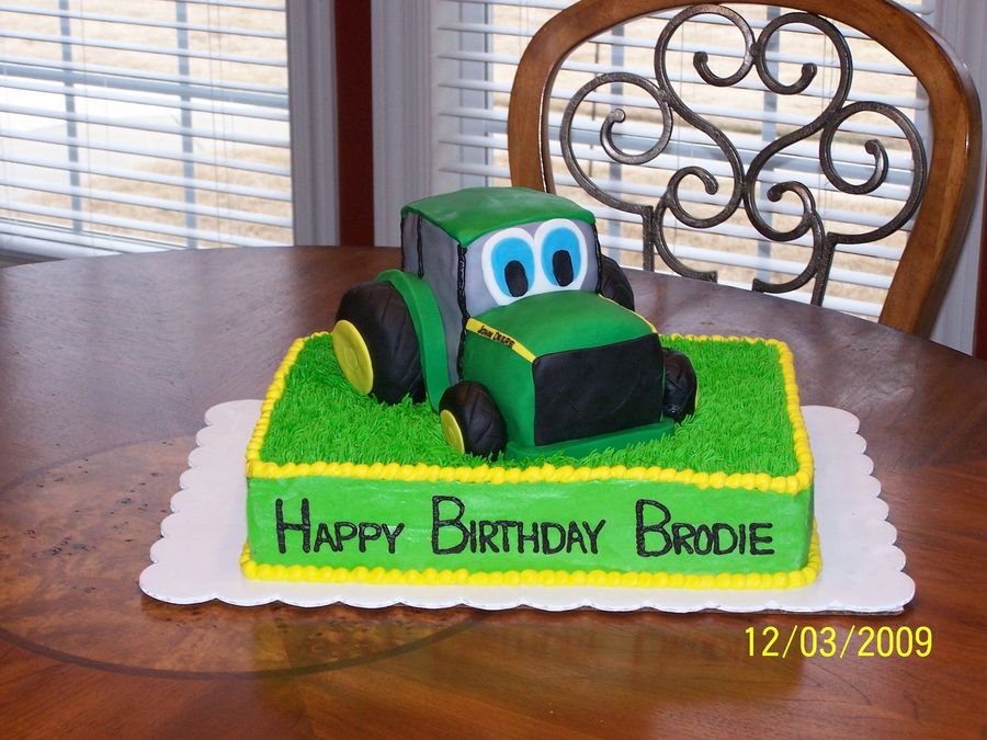 This is for my three-year-old's birthday. He loves Johnny Tractor. The tractor is covered in Satin Ice & fondant. The bottom is white cake with buttercream.