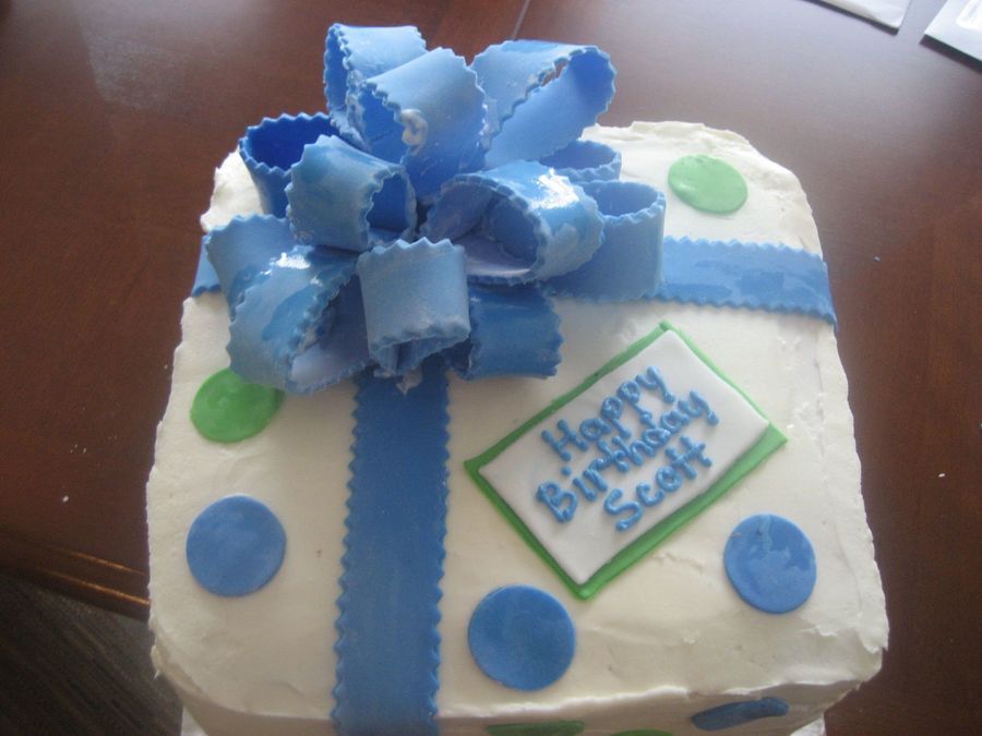 Chocolate cake with cream cheese sprinkle filling. Buttercream with fondant bow and polka dots.