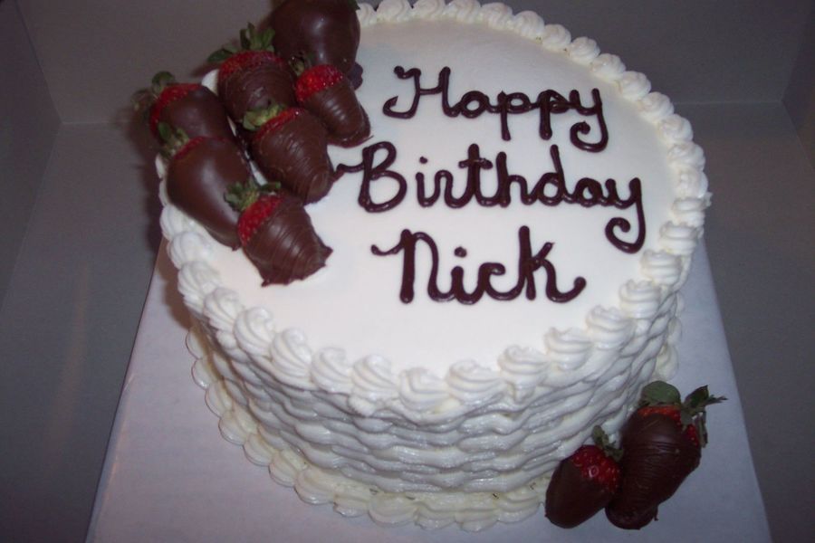 Cake I made for a friends bf. 9" round. Basketweave with chocolate covered strawberries