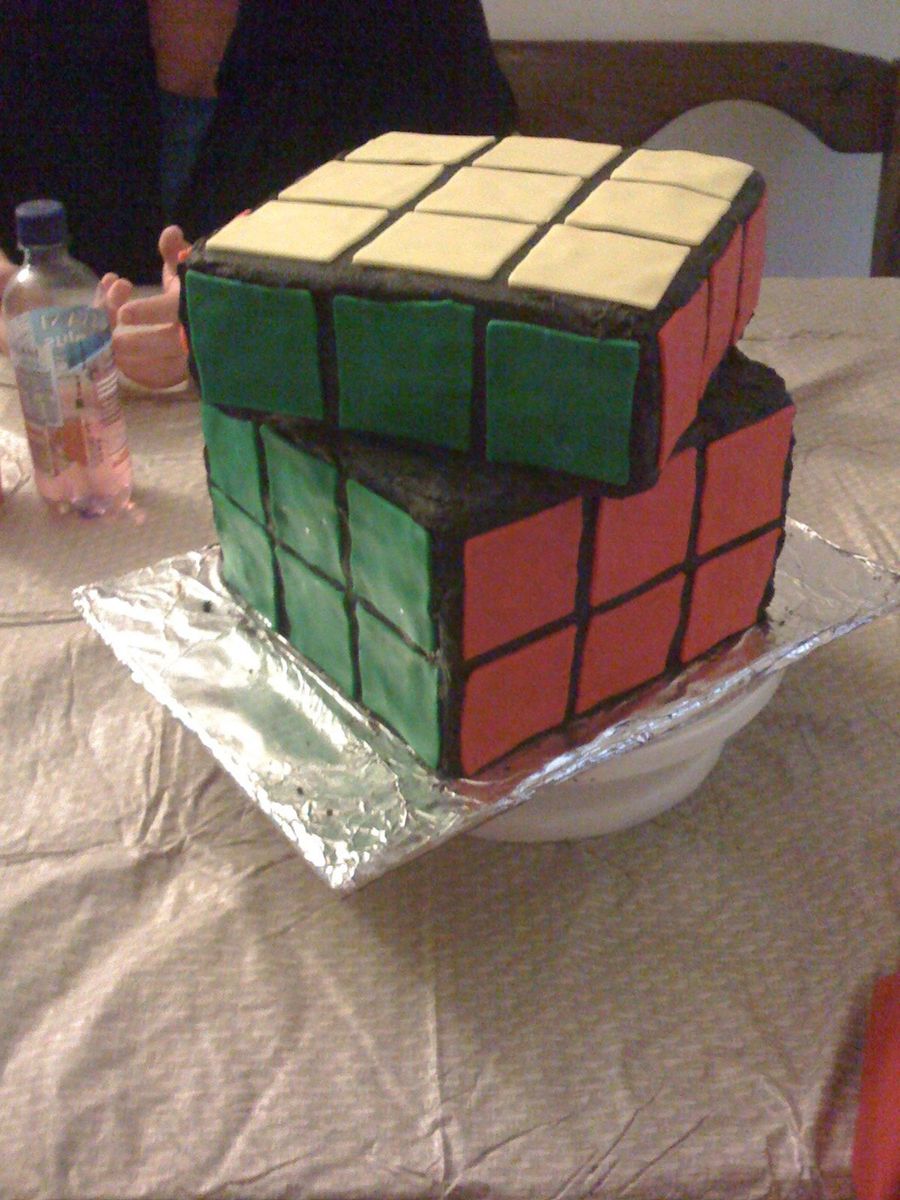My son is a cuber and this is the cake he requested for his birthday. It is a white cake with bc. the squares are fondant.