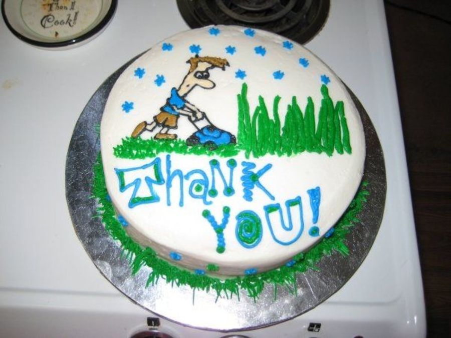 Cake i made for ppl who mowed our grass while we were on vacation lol white w/ strawberry filling.....bc icing
