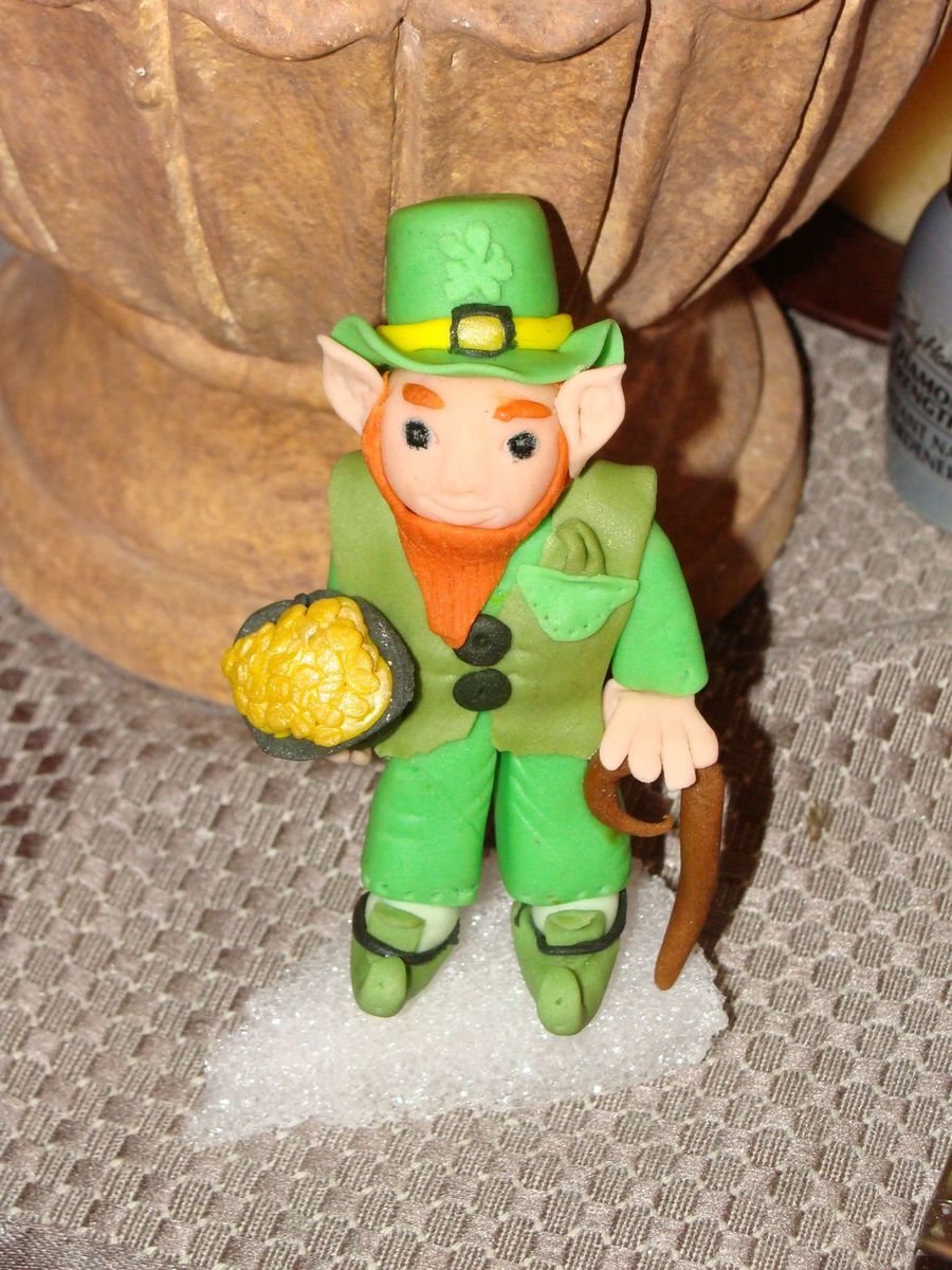 This is my little leprechon made of fondant. I will post a photo of the final cake later this week.