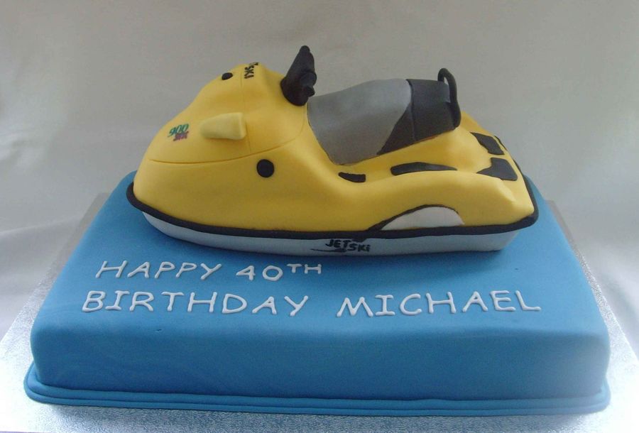 Jetski is cake with sugarpaste on top of another cake. Copy of Birthday boy's own jetski.
