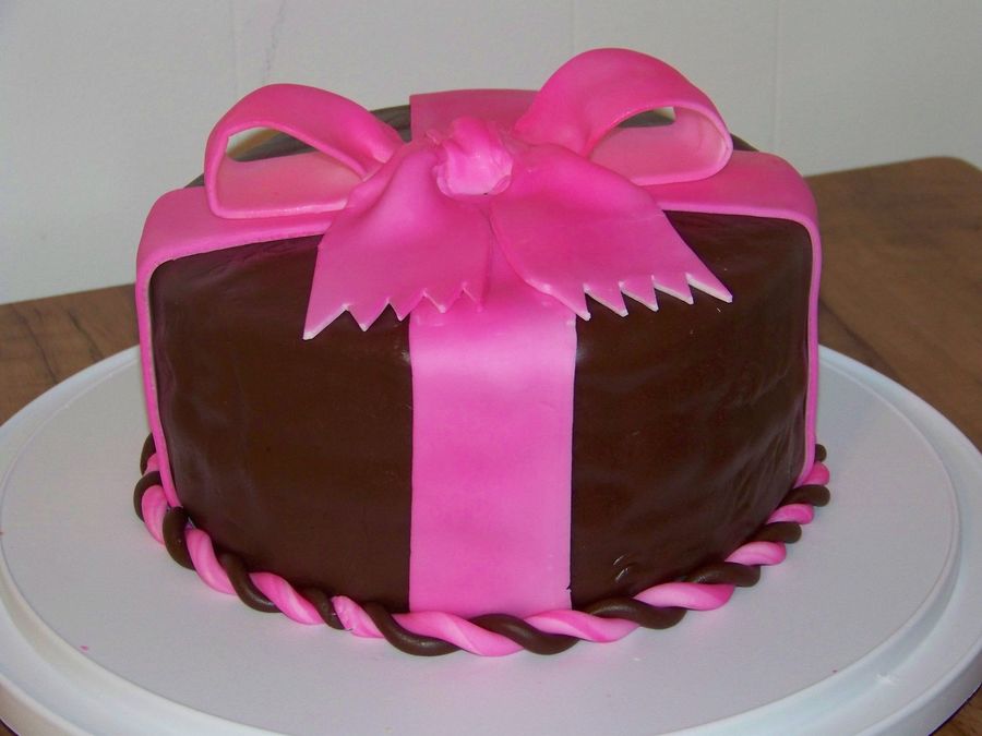 WASC cake covered in BC & chocolate MMF. My first bow. The bow cracked a little, but I am real proud of this cake. I did use an flower embossed rolling pin but you probably can't see that in the pictures. Used Wilton edible spray colors (love those BTW) for the pink color to make it look airbrushed. Criticism/comments are always welcome!! TFL!