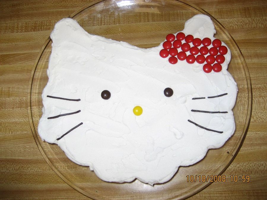 Photo of my dd Hello Kitty theme made with mini cupcakes. I used M&M's for the red "ribbon", eyes and nose.