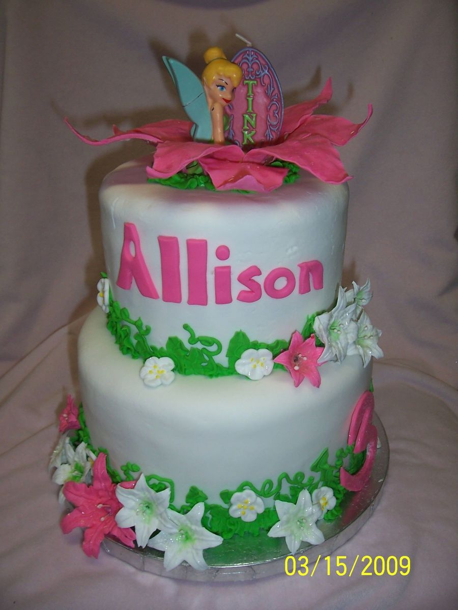 Fondant, with royal icing easter lillies, apple blossoms,and grass, and candle tinkerbell in fondant flower. I enjoyed making this cake, and beside the wing breaking on the candle- I was happy with how it turned out! THanks!
