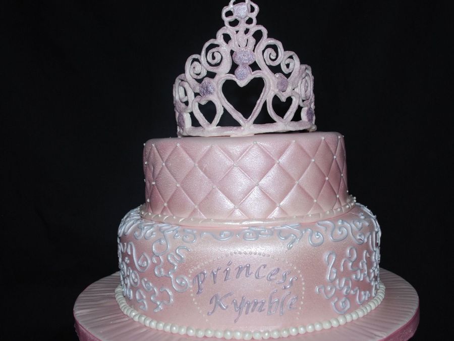 covered in pink fondant then airbrushed with cotton candy dust and lemon extract followed by premixed pearl shimmer. swirls are lavender. Royal icing crown