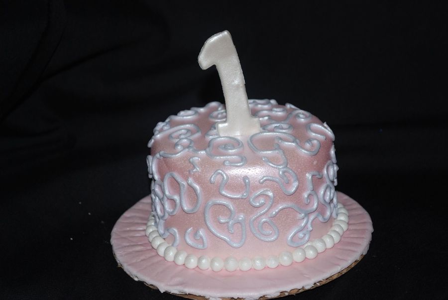 smash cake to match birthday cake. fondant coverd and royal icing swirls