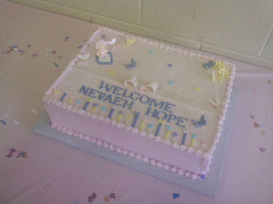 I made this for my niece's baby shower. Orange cream cake with buttercream icing and fondant accents