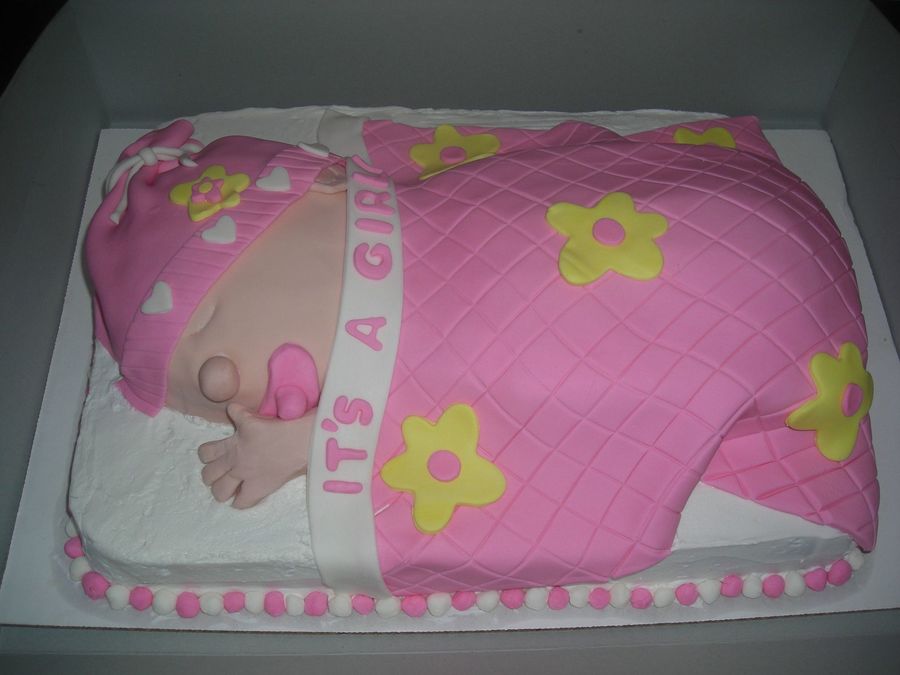 This cake was done for a baby shower, strawberry cake and white frosting. All decorations are fondant. Everyone loved it!