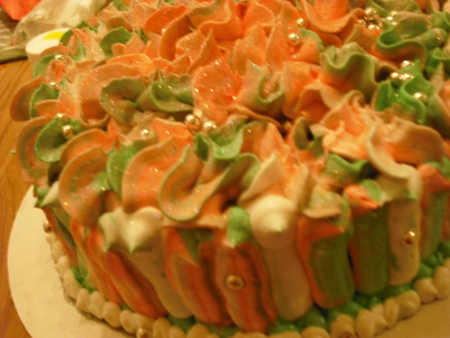 Pink & Green cake for an AKA on her Birthday. Silver pearls!