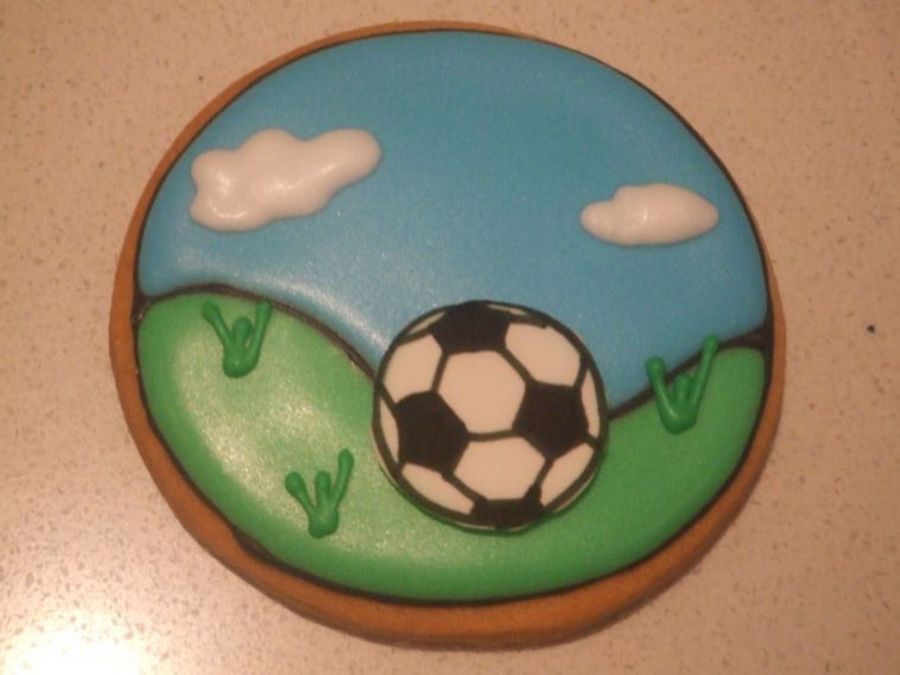 Totally inspired by TracyLH, but nowhere near as good. The soccer ball was the hardest part so in the end I printed the ball onto edible paper and then I put it onto fondant, then used RI to place on cookie. The kids loved them.