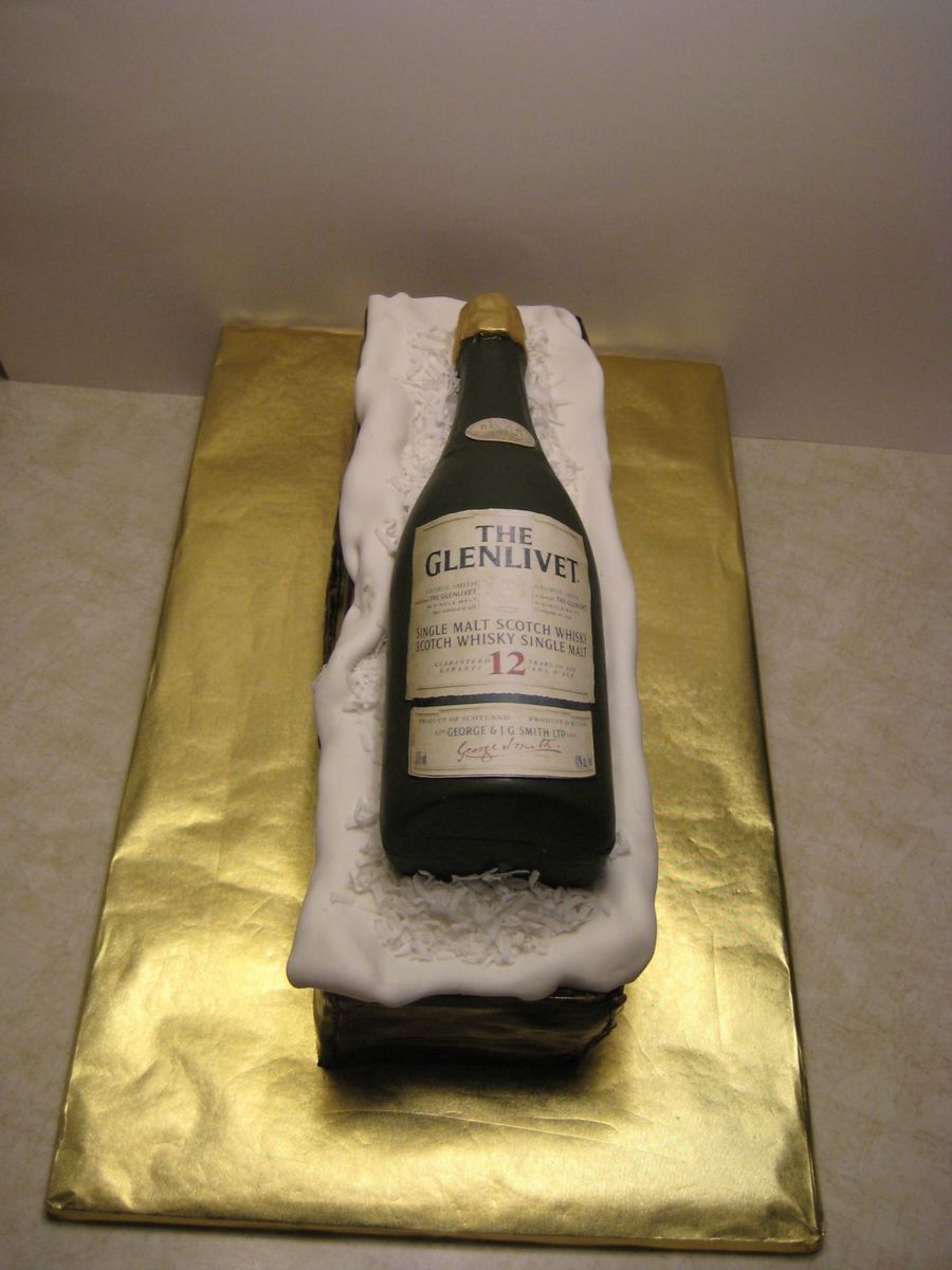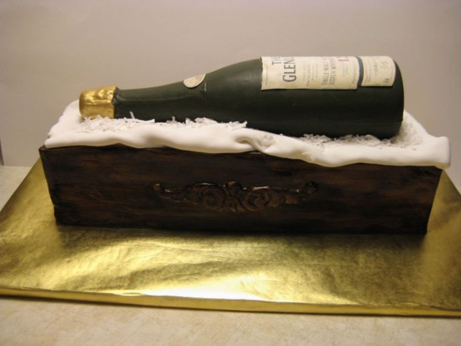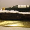 Triple chocolate fudge cake covered in fondant. Bottle is chocolate.