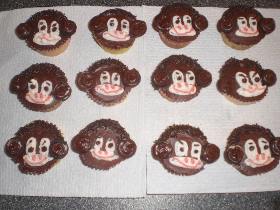 Thanks again to the book Hello Cupcake for the idea for these. Chocolate icing, jimmies for the hair, mini Oreo halves for the ears with icing piped on.
