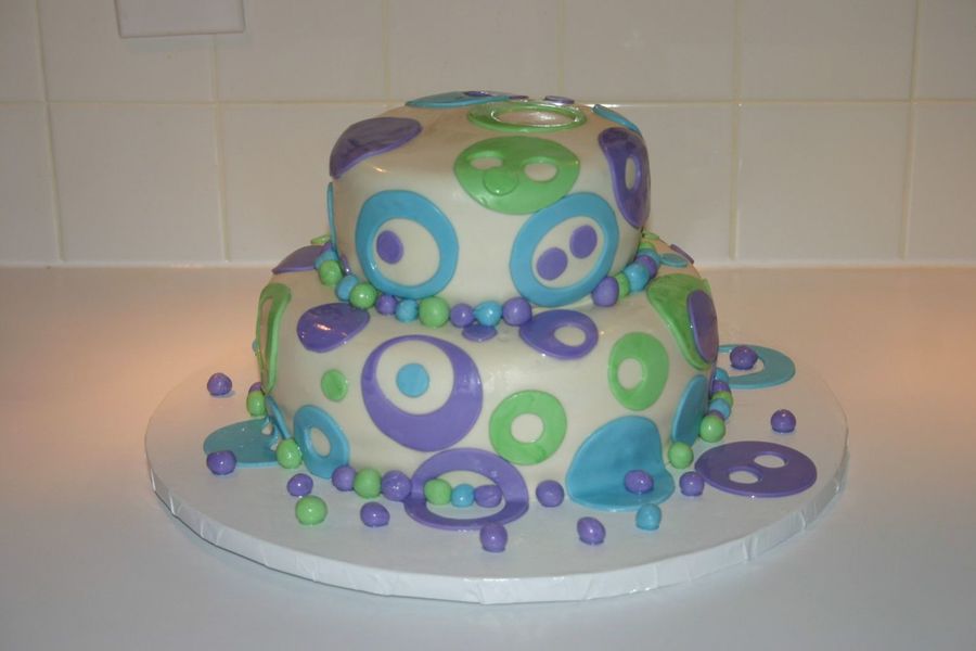 This was a birthday cake for a friend's daughter. It's chocolate cake covered in vanilla fondant with fondant accents.