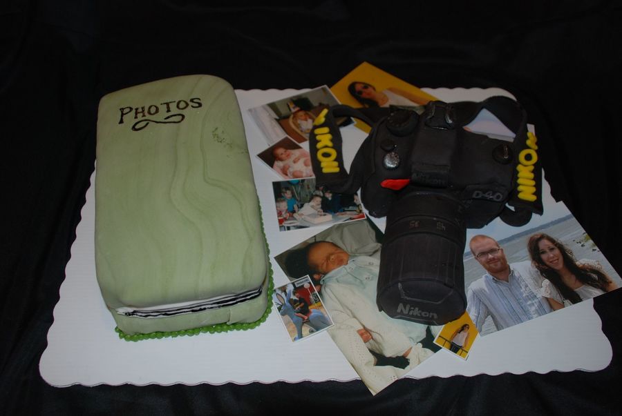 Everything is edible, except the photos. Camera is cake with buttercream icing and fondant details!