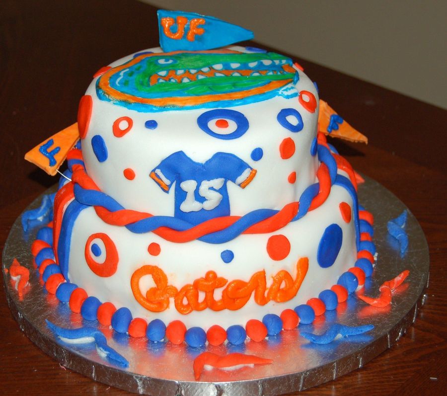 I made this for a lady that works with my husband. Her fiance is a huge gator fan. It is chocolate cake with fondant and fondant decorations. I gotta do some touchup before delivery. Thanks for looking