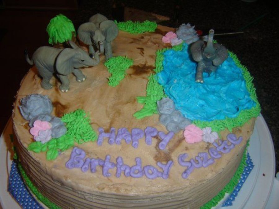I made this cake for a friend of mine.. she loves elephants and her boyfriend asked me to make "anything that had elephants on it". I came up with a safari type theme, she loved it! Inside is a standard strawberry shortcake, decorated in buttercream (elephants were toys i got from the dollar store)