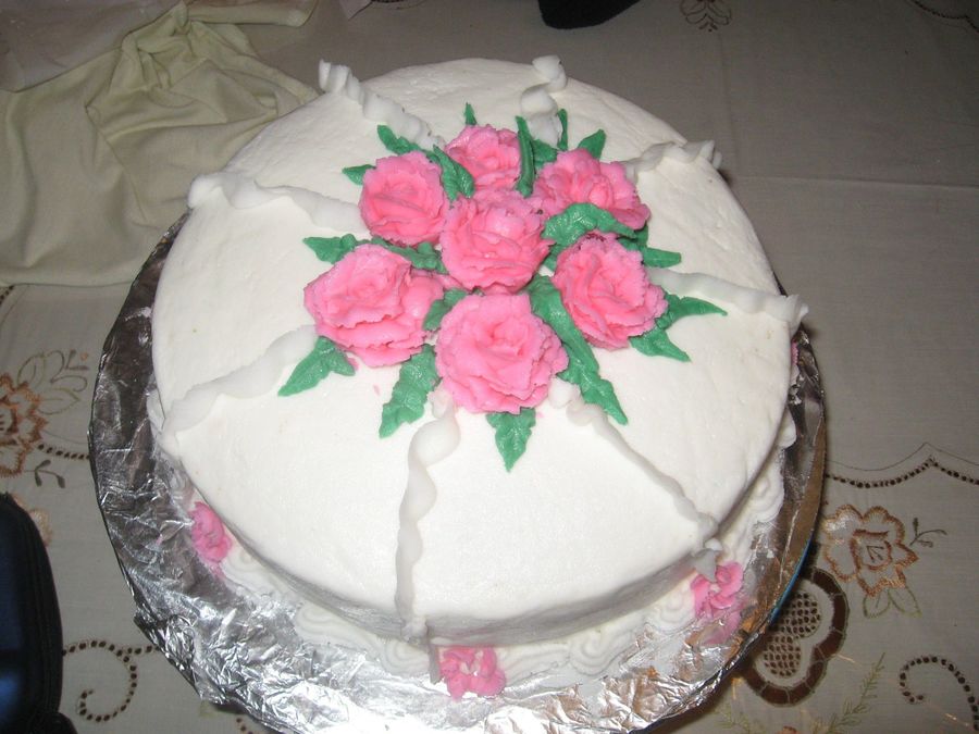 This was my final cake for Wilton Course 1. This was my first trial doing roses, so I think it turned out pretty well.