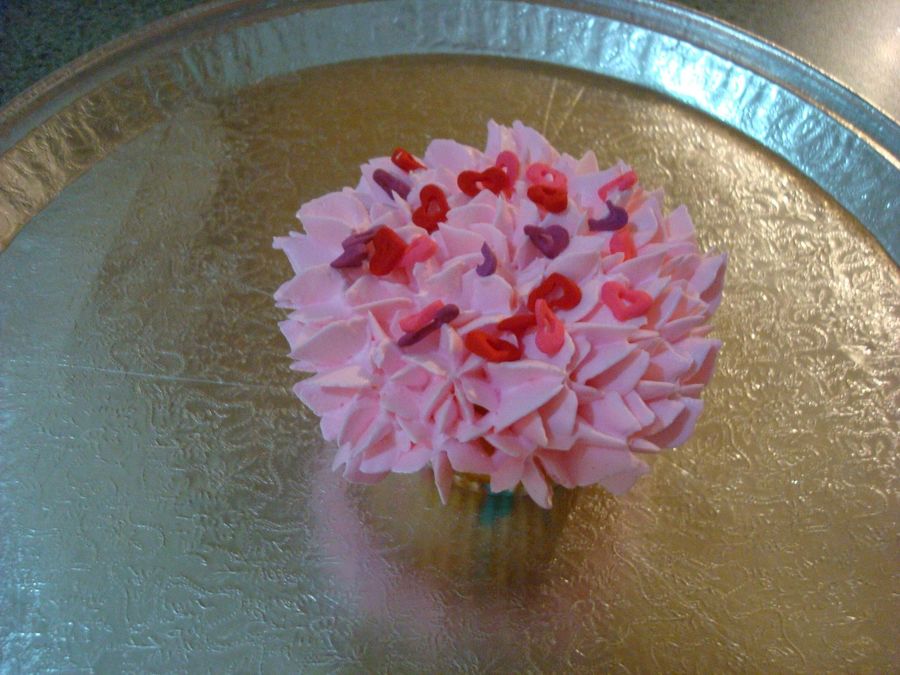 CUPCAKE DECORADO PARA EL DIA DE SAN VALENTIN ES CON CREMA BATIDA Y CONFETTY DE CORAZONES