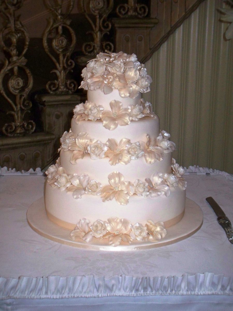 My cousin (who for many years has made cakes for my family) asked me to make this cake for her wedding. I was very nervous but also very honoured to have been asked. This is the largest cake I have ever done and it was also my first at sugarpaste flowers (besides a class in beginners flowers).