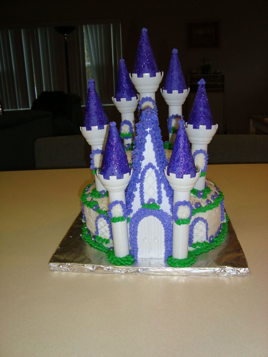 This castle cake was a lot of work. It would of been nice if the towers were hollow at the bottom. Transporting the cake was a bit tricky. Next time I will place the towers in the cake after transporting it.