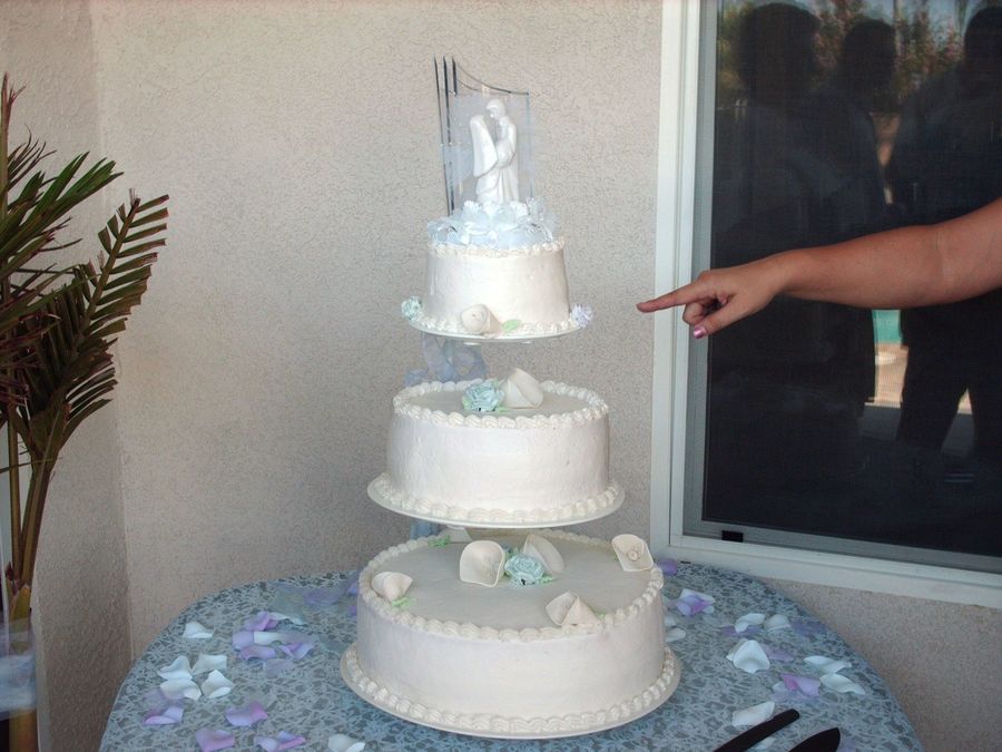 This is my very first! It was so simple (thank goodness!) Gumpaste Cala Lillies, BC roses (which I hate making bcuz I'm no good at it). Cake was white w/BC, nothing fancy, just as the bride wanted it. She loved it and I was so relieved :)
