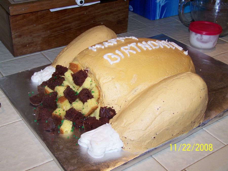 Got this idea from others on Cake Central and from Family Fun Magazine. Legs were chocolate cake, body was yellow. Everyone got a kick out of this cake, and I had fun making it.