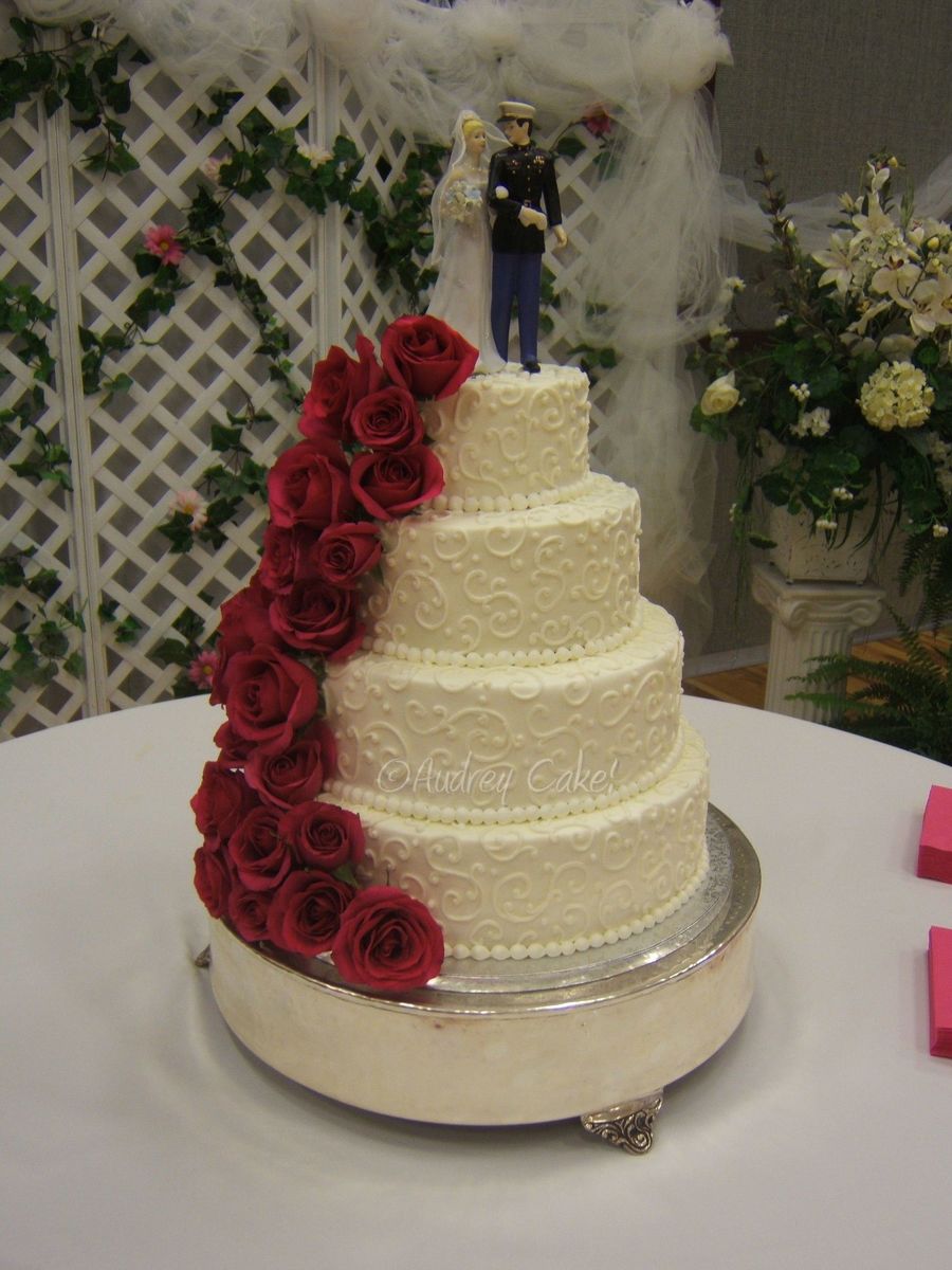 All bc, with fresh roses. They were really hot pink in person, the photo makes them look darker.