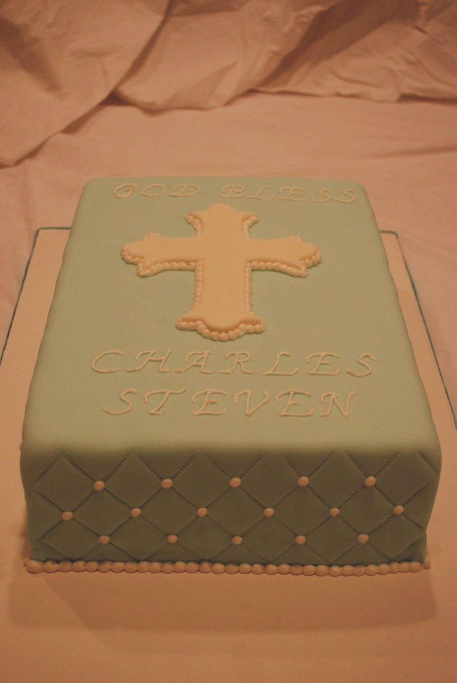 Fondant covered baptism cake.