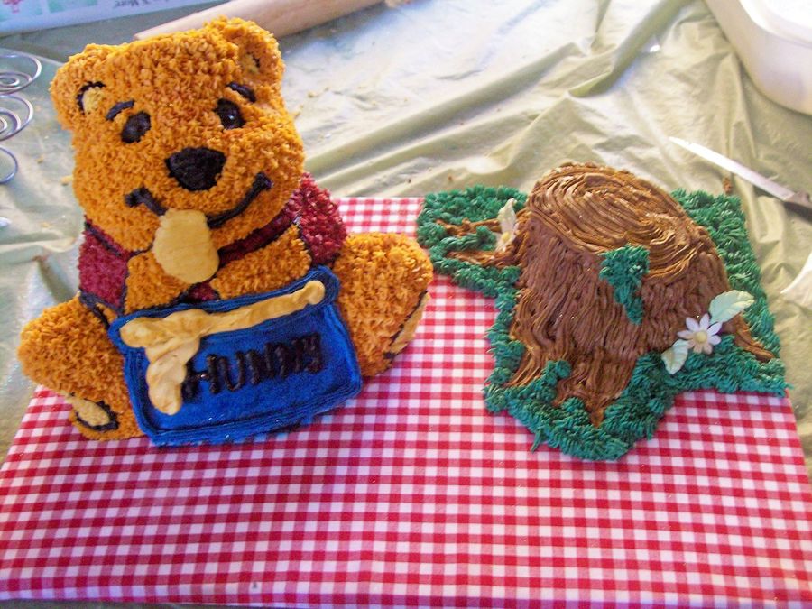 I made this cake for my godson's 2nd bday...after this pic was taken it had a little accident and I spent the next hours fixing it lol, at least everything turned out alright and at least my godson saw it and screamed "Pooh!" I took that as a good sign because it was hard to get it to look like Winnie the Pooh from the original figure.